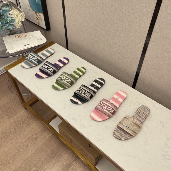 Replica-ontwerper Dior Dway One-Word geborduurde slippers schoenen Multicolor Online online