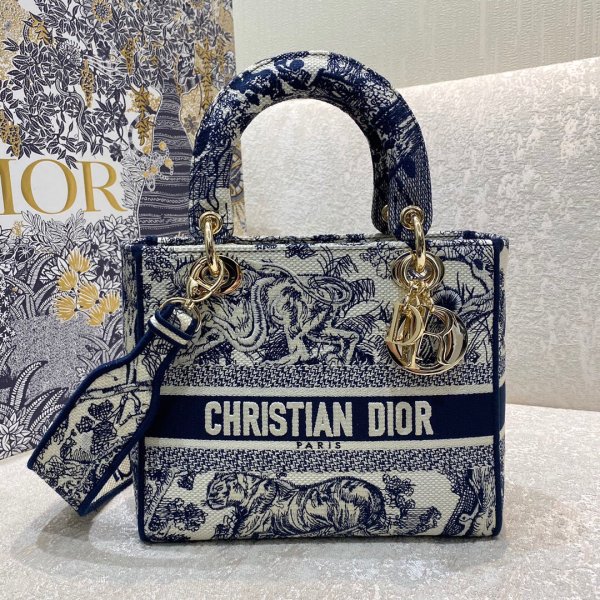 BLAUWE TOP-KWALITEITSLADY DIOR 24 CM PALMS Borduurwerk dame D-lite tas