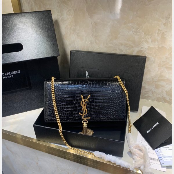 YSL goedkope heilige laurent krokodil patroon 24 cm zwarte tas