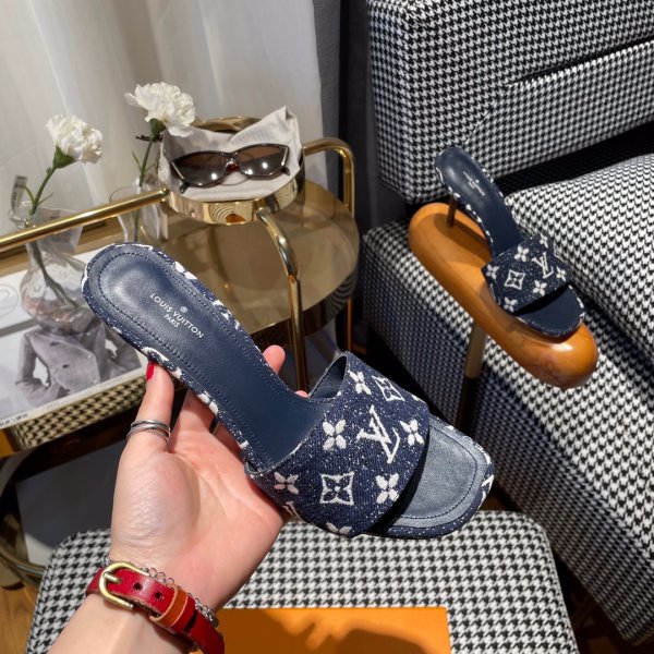 Donkersmerk lente en zomerse slippers in reliëf, nieuwe eilandvakantieserie, denim oude bloem all-match moderne retro, reliëf slippers hebben de beste voetgevoel in de geschiedenis,