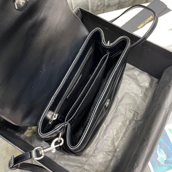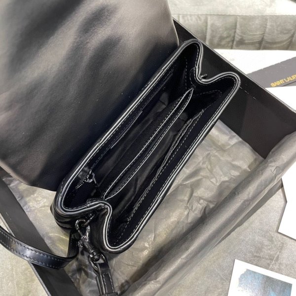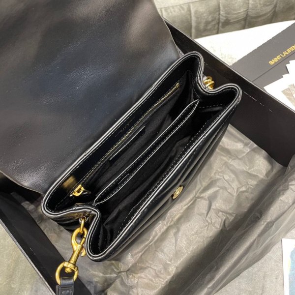 SAINT LAURENT MONOGRAM BAG WITH FRONT FLAP, FEATURING INTERLACED METAL YSL INITIALS, A LEATHER AND METAL CHAIN STRAP THAT CAN BE WORN DOUBLED ON THE SHOULDER AND Y-QUILTED OVERSTITCHING.