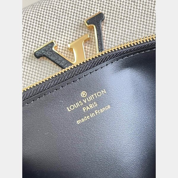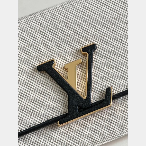 This refined interpretation of the Capucines wallet Combineert natuurlijke canvas met zwarte lederen afwerking. De sluiting van de LV -initialen, de handtekening van de Capucines -lijn, is gedeeltelijk bedekt met leer. Deze klassieke flap -portemonnee opent om een verscheidenheid aan zakken, compartimenten en kaartsleuven te onthullen.