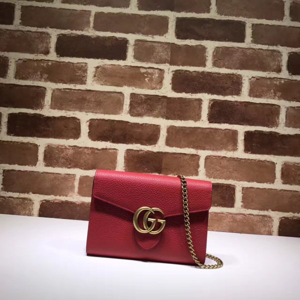 The GG Marmont mini chain bag has a removable chain shoulder strap and extensive interior space.