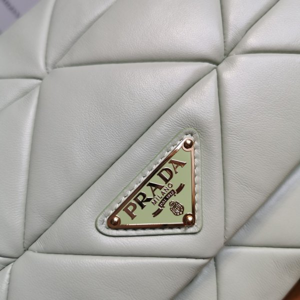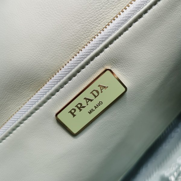 Prada logo nylon lining with two pockets, one with zipper