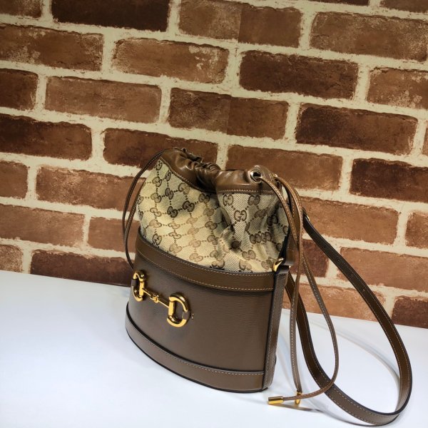 GUCCI 1955 HORNKBIT Small Bucket Bag 602118 GG CANVAS
