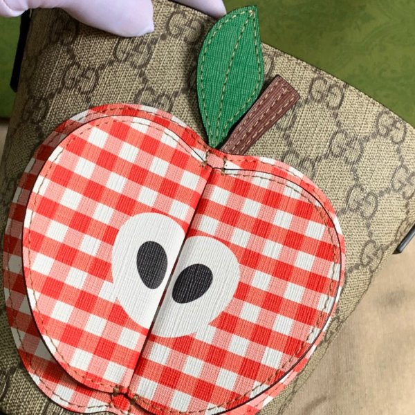 Beige and ebony GG Supreme canvas with 3-D apple vichy detail