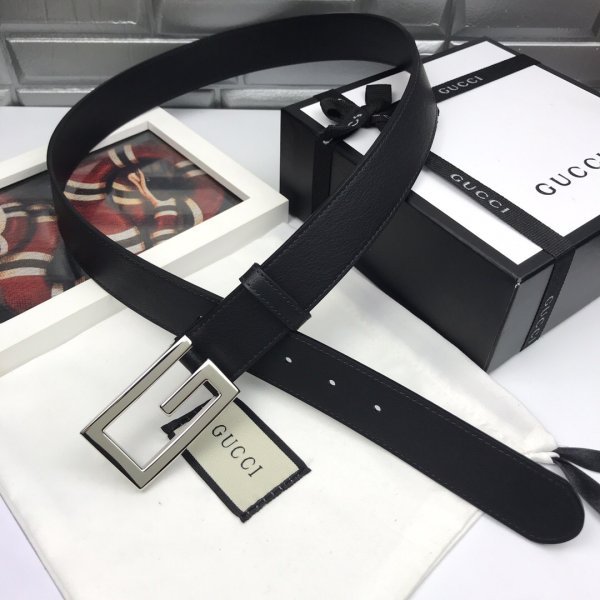Koop 100% replica GG Silver Buckle Gucci Black lederen riem groen/rood/groen AT.RU