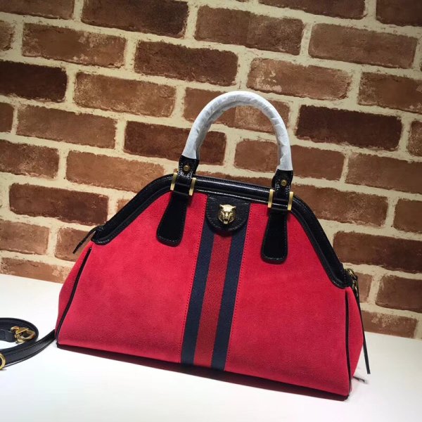 Gucci 516459 Re(Belle) Medium Top Handle Bags in Red Suede